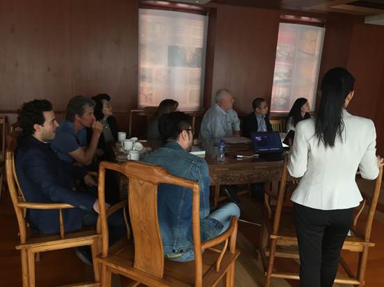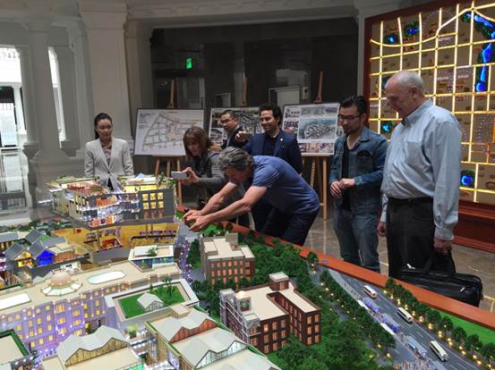 廣安置業(yè)營銷總監(jiān)沈紅梅一行向來訪人員介紹了項(xiàng)目的定位與特點(diǎn),項(xiàng)目理念、設(shè)計(jì)細(xì)節(jié)以及富有民國特色的建筑風(fēng)格,得到了好萊塢電影大師的一致好評,紛紛饒有興趣的詢問相關(guān)信息、拍照留用。Jonathan Bollier表示北京坊項(xiàng)目令人驚艷,Phil Lengyel甚至開玩笑的表示希望能在北京坊擁有一間自己的辦公室。