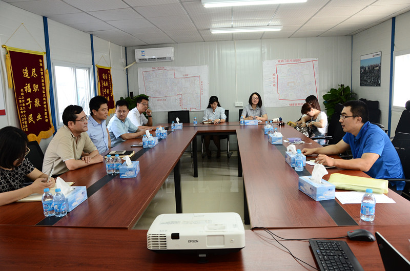 2015年8月18日,廣安控股公司總經(jīng)理張曉陽帶領(lǐng)控股公司各部門領(lǐng)導(dǎo),頂著炎炎烈日來到宣西北項目指揮部,聽取了項目騰退組組長孫樹同志對于項目具體情況的匯報及后期產(chǎn)業(yè)運(yùn)營的規(guī)劃。