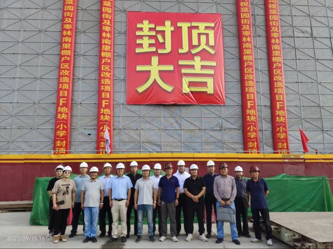 2023年7月13日,經(jīng)廣安集團(tuán)黨委批準(zhǔn),菜園街項(xiàng)目成立了“菜園街棚改項(xiàng)目臨時(shí)黨支部”,臨時(shí)黨支部成立了“青年突擊隊(duì)”,圍繞菜園街項(xiàng)目中心工作充分發(fā)揮戰(zhàn)斗堡壘和先鋒模范作用,為推動(dòng)項(xiàng)目建設(shè)提速增效凝聚起了強(qiáng)大合力。同時(shí),為積極落實(shí)西城區(qū)學(xué)位保障專班工作要求,在西城區(qū)各委辦局的指導(dǎo)下,廣安融盛公司成立了F地塊專項(xiàng)協(xié)調(diào)小組,廣安融盛公司總經(jīng)理擔(dān)任組長,施工單位、監(jiān)理單位領(lǐng)導(dǎo)現(xiàn)場辦公,協(xié)調(diào)解決現(xiàn)場疑難問題,為項(xiàng)目快速推進(jìn)提供了重大保障。結(jié)構(gòu)封頂這一階段性成果,離不開各參建單位的辛勤付出、精誠配合以及各級(jí)領(lǐng)導(dǎo)的大力支持與幫助。至此,第一階段施工任務(wù)圓滿完成,為下一階段施工打下了良好的基礎(chǔ),也為項(xiàng)目按時(shí)竣工提供了有力保障。